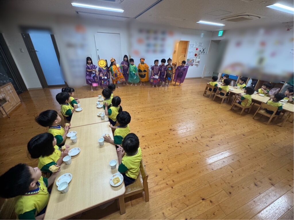 2階では、たんぽぽ・すみれぐみにも「トリック・オア・トリート!」の呪文を元気に届けました♪