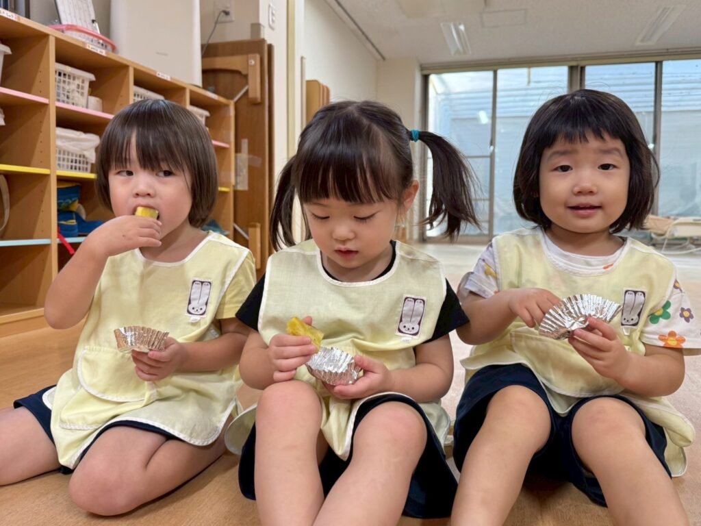 それ以外の子どもたちはひとくちずつ焼き芋を味わいました。